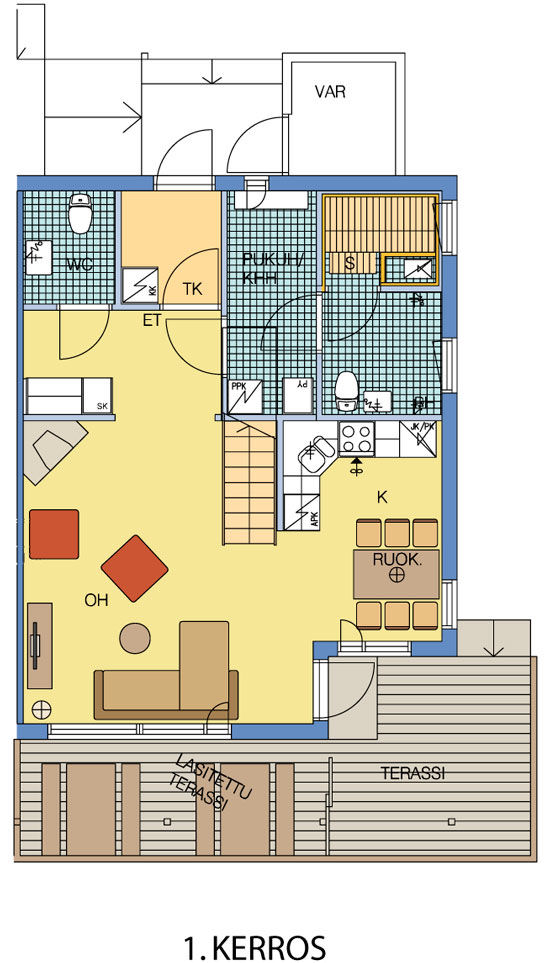 In planning holiday apartments, Kullasmarina is also paid attention to customers which have physical disabilities. Doorway sizes are planned for passing with a wheelchair and every holiday apartment is equipped with a slide. There are bedrooms in first floor in larger apartments.