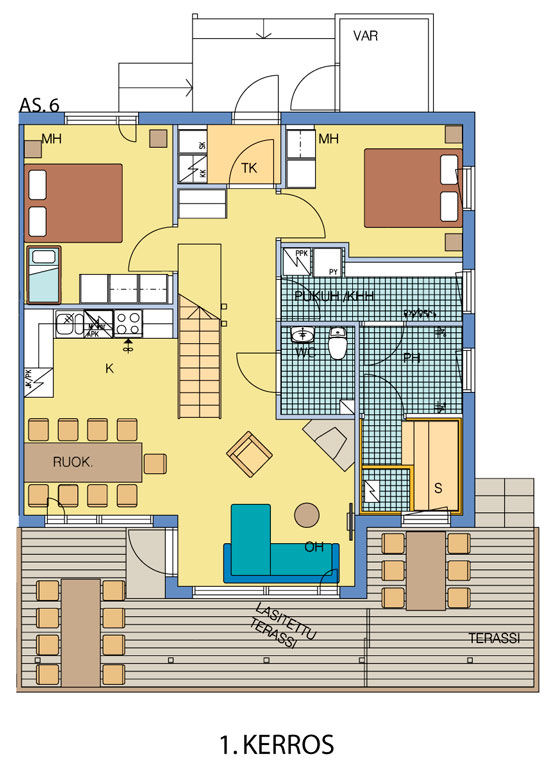 In planning holiday apartments, Kullasmarina is also paid attention to customers which have physical disabilities. Doorway sizes are planned for passing with a wheelchair and every holiday apartment is equipped with a slide. There are bedrooms in first floor in larger apartments.
